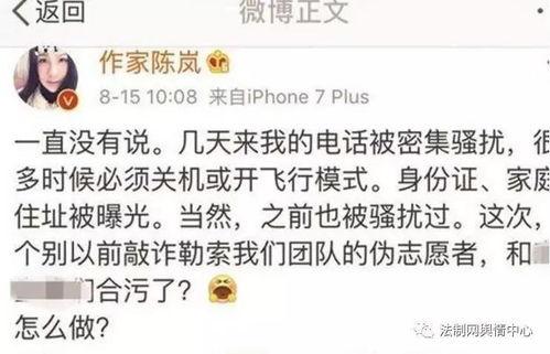 面对网友的质疑,陈岚本人也做出了回应。她在微博上表示:“我所说的都是事实,希望大家能够理性看待。”这番话一出,更是引发了网友们的热议。有人支持陈岚,认为她勇敢地揭露了娱乐圈的黑暗面;也有人质疑她的动机,认为她是在炒作自己。